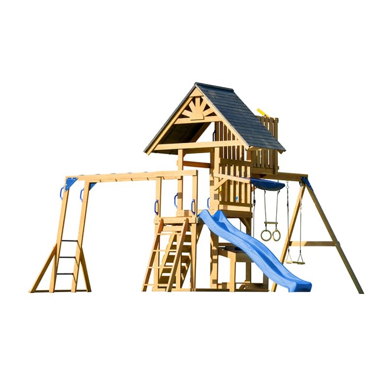 Contient : Tour Mitch 2 balançoires trapèze boutique toboggan bleu Convient aux enfants de 3 à 12 ans. Peut accueillir jusqu'à 5 enfants simultanément. Poids maximal supporté : 200 kg pour la structure de jeux. Dimensions Dimensions extérieures (L x l x H) : 482 x 500 x 338 cm. Dimensions intérieures (L x l x H) : 89,5 x 80 x 202,5 cm. Siège de la balançoire (L x l x H) : 44 x 17,5 cm. Hauteur de la plateforme : 120 cm. Bac à sable Dimensions extérieures (L x l x H) : 158 x 80 x 8,6 cm. Dimensions intérieures (L x l x H) : 156 x 78 x 8,5 cm.