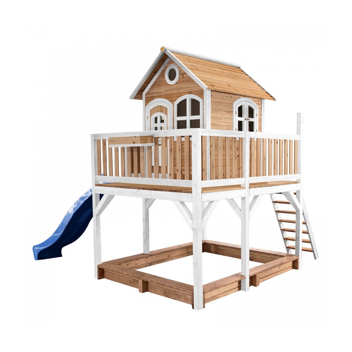 Axi Maisonnette LIAM Brun Blanc sans agrès avec toboggan Bleu et bac à sable  En savoir plus