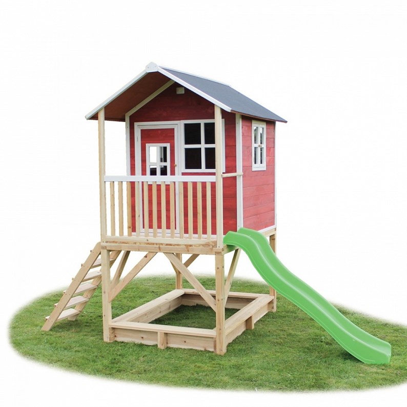 Quel enfant ne souhaite pas posséder sa propre cabane de jardin ? Un endroit idéal pour jouer avec son frère, sa sœur, son copain ou sa copine ? Le Loft 500 est une cabane pour tous les âges. Avec ses dimensions intérieures de 1.18m x 1.18m, c'est une cabane de grande taille permettant de jouer à plusieurs. La cabane surélevée possède sa propre véranda et grâce au toboggan, tu redescends en un éclair ! Le toit étanche permet de toujours garder l'intérieur sec ! Les plus jeunes peuvent s'amuser dans le bac à sable tandis que les enfants plus âgés jouent en haut ! Avec ses joyeuses fenêtres blanches, cette cabane est une maison de rêve pour les enfants à partir de 3 ans.