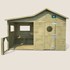 Cabane en bois traité avec préau et banc