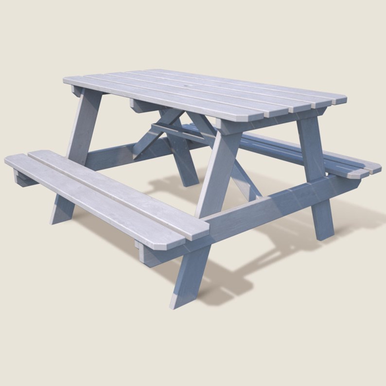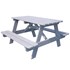 Cette table de pique-nique mesure 90 cm sur 91,5 cm . Elle a une hauteur de 50 cm et les bancs mesurent 25 cm de haut . Elle est destinée aux enfants de 3 à 7 ans et peut en accueillir jusqu'à quatre . Elle est équipée d'un trou pour parasol (non fourni).