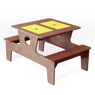 Cette table à eau et sable est habilement fabriquée en contreplaqué marin et revêtue de traitements résistants aux UV et à l’eau, spécialement testés et développés pour le mobilier d’extérieur.