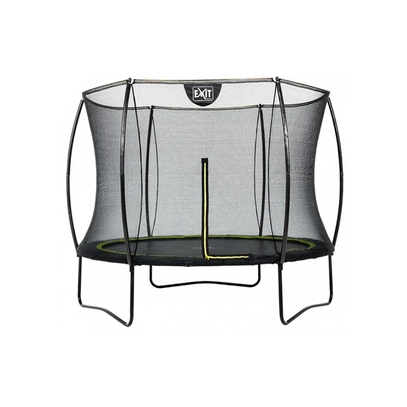 Conception et sécurité. Ce trampoline Silhouette EXIT est réalisé dans un beau coloris noir mat avec une touche verte rafraichissante. Cela donne au trampoline un look contemporain et élégant. En outre, le filet de sécurité possède d'élégants montants courbes, pour un filet bien tendu. Cela offre à la fois un bel aspect transparent et également plus de sécurité, car les enfants ne peuvent pas rester coincés dans le filet. Les montants sont équipés d'une mousse de sécurité de qualité supérieure revêtue d'une gaine, afin de réduire au maximum le risque de collision douloureuse. Le bord de protection possède une épaisseur de 20 millimètres sur toute la largeur de 28,5 cm et recouvre efficacement les ressorts. En outre, l'espace entre le bord de protection et les ressorts est comblé par un filet, empêchant les enfants de se coincer les pieds dans les ressorts. L'accès au trampoline est protégé par une robuste fermeture à glissière bien visible de couleur verte, empêchant qu'une cabriole inattendue ne se solde pas par un atterrissage brutal en dehors de la surface de saut !.
