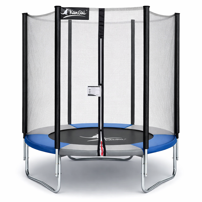• Pour faire du sport sereinement, le trampoline est sécurisé par un filet haut (1,80m à partir du tapis) et à petites mailles pour éviter de passer même un petit doigt. L'accès au trampoline est facile grâce au zip de la porte. Sa petite cordelette rouge permet de vite repérer entrée et sortie.
