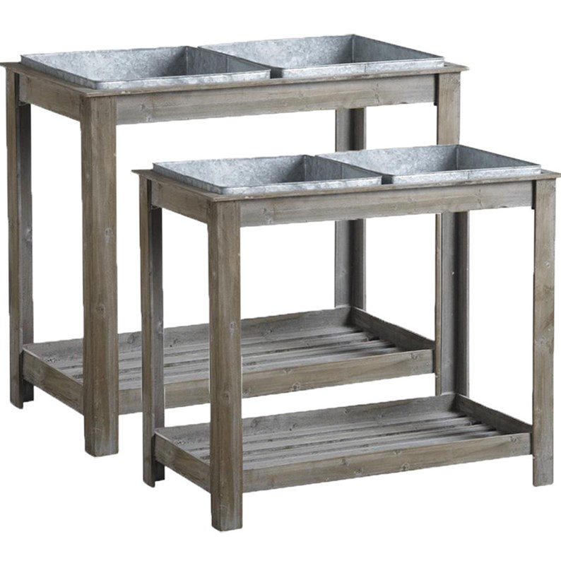 Un petit coin à soi... Lot de 2 magnifiques carrés de potager sur élevés en bois et galva pour y faire pousser vos aromates et autres petites plantes… et pourquoi pas des fleurs ! Idéal pour agrémenter un coin nature sur votre terrasse, proche de votre potager ou de votre serre. Matières : bois et métal galvanisé. Dimensions : 78 x 42 x 68 et 63 x 30 x 45. Poids 8 kg.