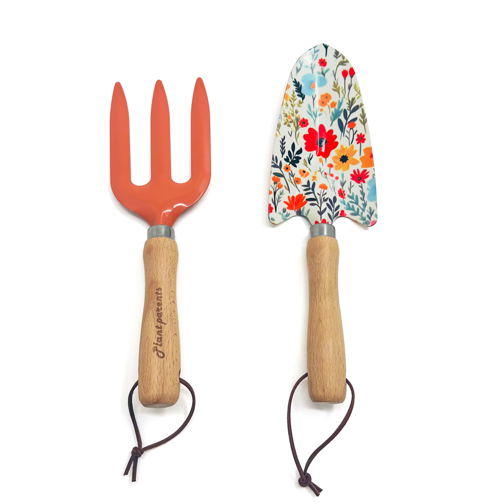 Duo outils de jardin mini râteau et pelle en bois et acier