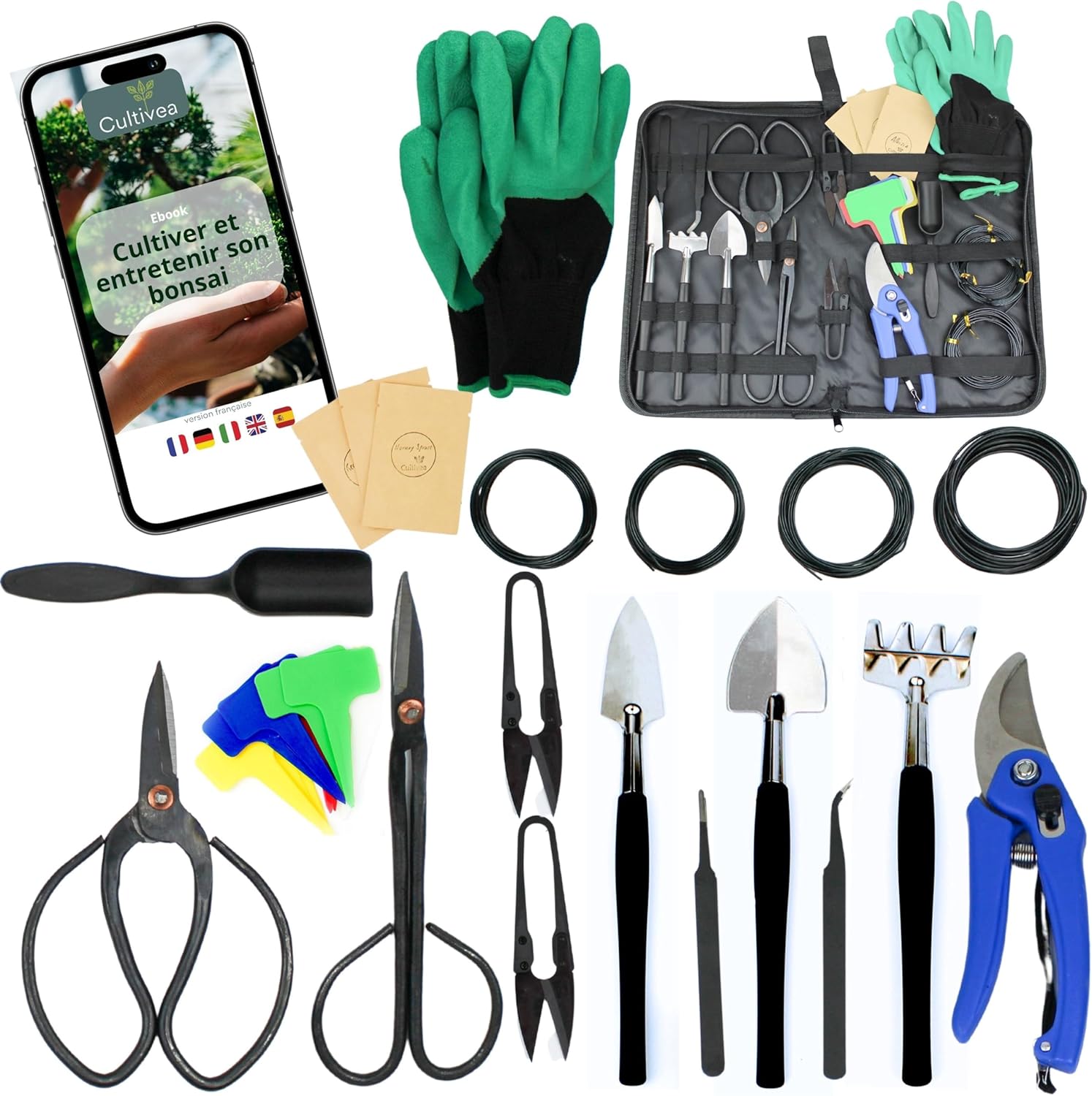 Le kit est idéal pour toutes les étapes de l’entretien de vos bonsaïs : taille des feuilles, coupe des branches, élagage minutieux. Utilisez les pinces, ciseaux et sécateur pour sculpter votre plante avec soin et précision.