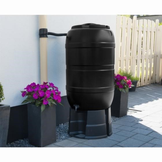 Set récupérateur d’eau 210l noir avec pied et connecteur de gouttière