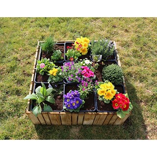 | Avec ce carré potager moderne vous retrouverez le plaisir de jardiner, cultiver vos aromates, fruits ou légumes. Idéale pour réaliser vos composition florales, il se pose directement sur votre balcon ou terrasse et permet de créer une jolie décoration d'extérieur. Fourni avec 9 bacs en plastique. Capacité: 117 litres |