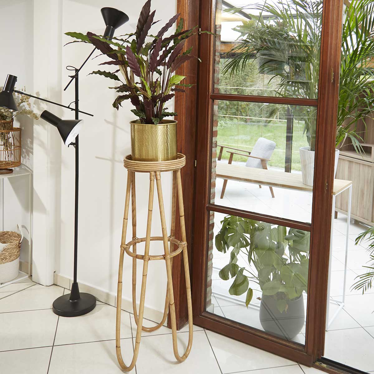 Ideal pour porter une plante, une lampe ..., cette sellette en rotin elancee et legere aux formes arrondies apportera un esprit
