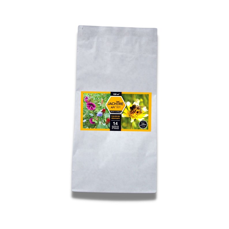 Jachère apicole 100 m2 semis de printemps : Source d'alimentation dès le début du printemps pendant plusieurs années14 espèces florales : attractivité et qualité nutritive pour l'abeille domestique, dont l'Onobrychis Viciifolia, Trifolium Resupinatum, Borago Officinalis, Centaurea Cyanus et Trifolium Repens.Quand semer ? A l'automne.Découvrez aussi la Jachère de l'éte à planter au printemps !