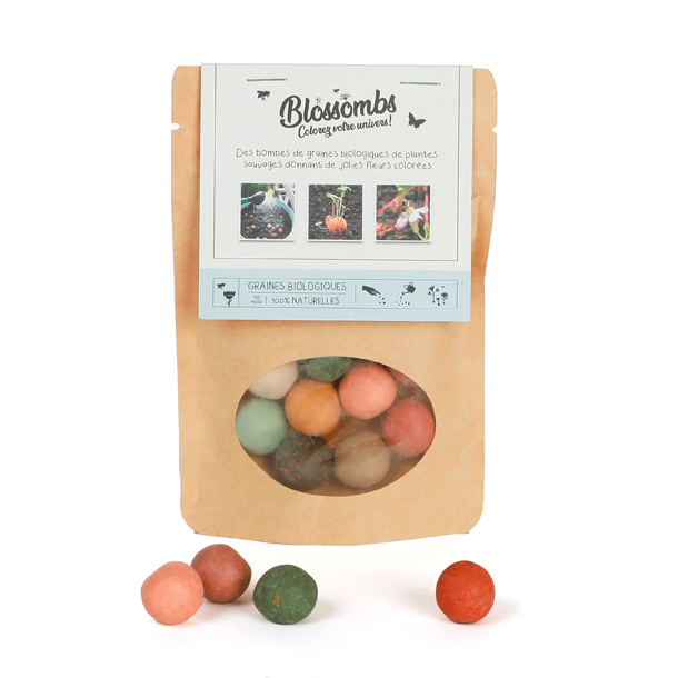 La mission de Blossombs ? Mettre plus de couleurs de nos vies grâce aux fleurs ! Et parce que planter des fleurs signifie assurer une source d’alimentation aux abeilles, papillons et autres insectes pollinisateurs, Blossombs fabrique des billes de graines biologiques aux ingrédients 100% naturels. A vous les beaux paysages fleuris !