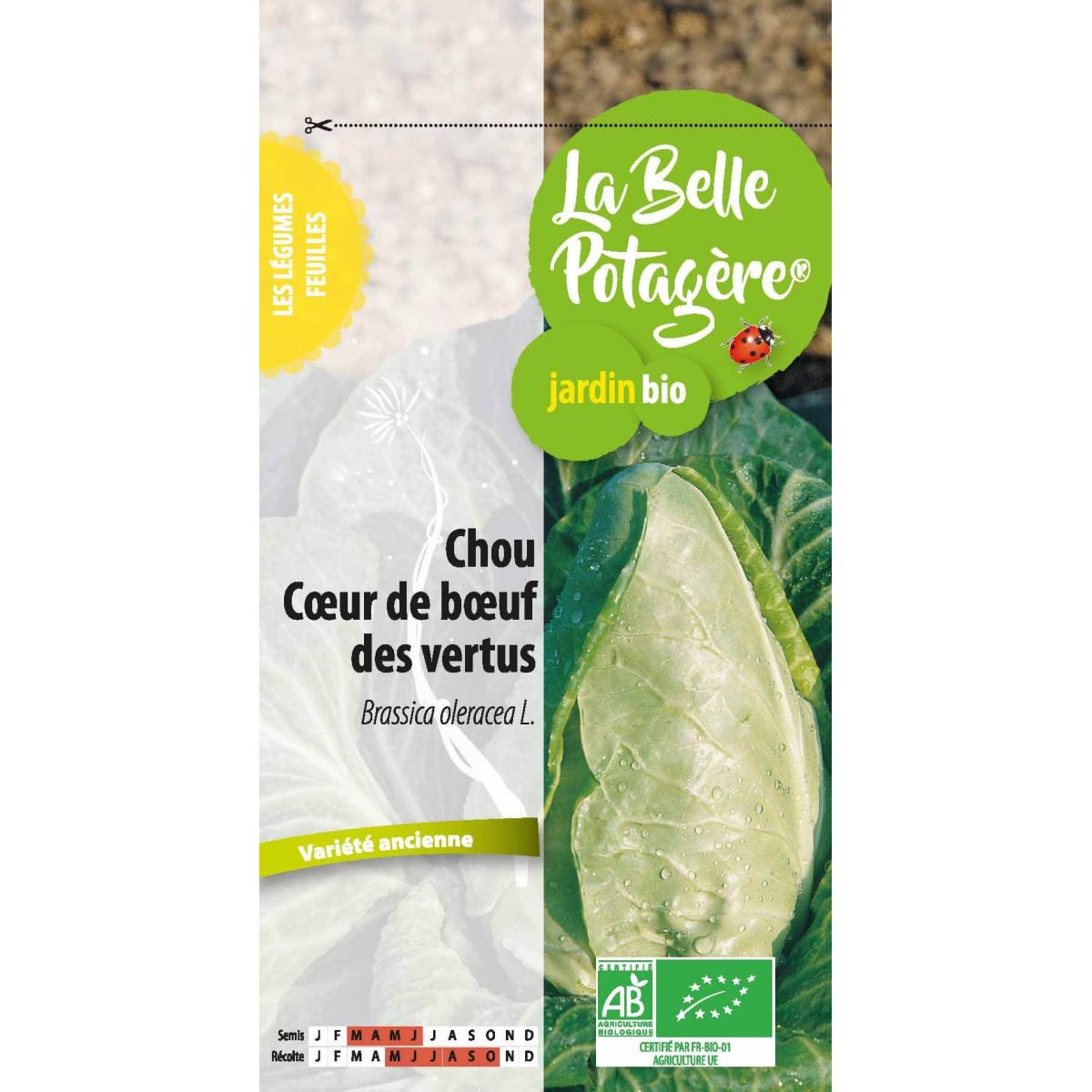 Chou Coeur de boeuf des vertus - 0,4gUn sachet contenant des graines de légumes non OGM, 100% biologiques et provenant de cultures locales.Les cultures sont en Biodynamie ou suivent le cahier des charges Bio Cohérence.Les graines sont issues de variété d'exception, remarquables ou même anciennes.Pour les besoins des jardiniers exigeants et curieux d'apprendre à cultiver écolo.Caractéristiques Sachet de 0,4 gramme de graines de Chou Coeur de boeuf des vertus (légumes feuilles) Variété ancienne Semis : de mars à juin Récolte : de mai à octobre