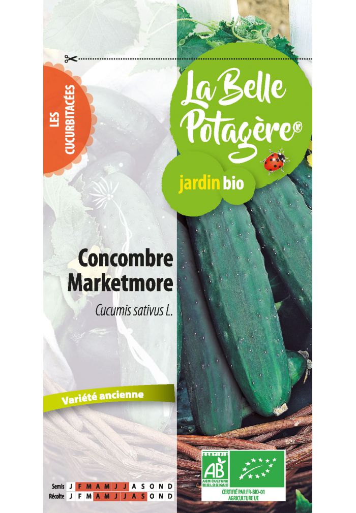 Concombre Marketmore - 0,5gUn sachet contenant des graines de légumes non OGM, 100% biologiques et provenant de cultures locales.Les cultures sont en Biodynamie ou suivent le cahier des charges Bio Cohérence.Les graines sont issues de variété d'exception, remarquables ou même anciennes.Pour les besoins des jardiniers exigeants et curieux d'apprendre à cultiver écolo.Caractéristiques Sachet de 0,5 gramme de graines de Concombre Marketmore (cucurbitacées) Variété ancienne Semis : de février à juillet Récolte : de avril à septembre
