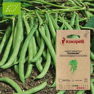 Cette variété ancienne très précoce offre une abondance de gousses vertes et sans fils, de 10 à 15 cm de long. Elles contiennent, en fin de saison, des grains panachés de marron et d'ocre.