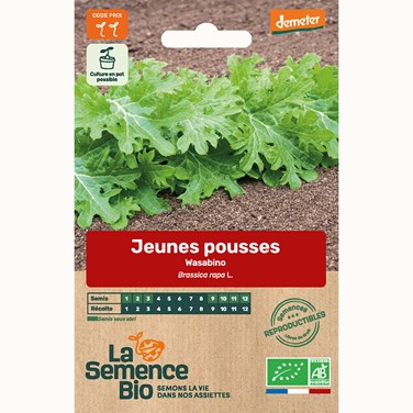 Descriptif : Les jeunes pousses Wasabino se distinguent par leurs feuilles vert clair, légèrement dentelées. Elles offrent une saveur piquante et rafraîchissante rappelant le wasabi, d'où son nom. Faciles à cultiver et rapidement prêtes à récolter, elles sont un choix idéal pour apporter une touche de piquant à vos salades ou mets cuisinés.