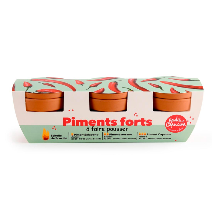 Kit de jardinage 3 pots de piments à faire pousser du doux au plus relevé
