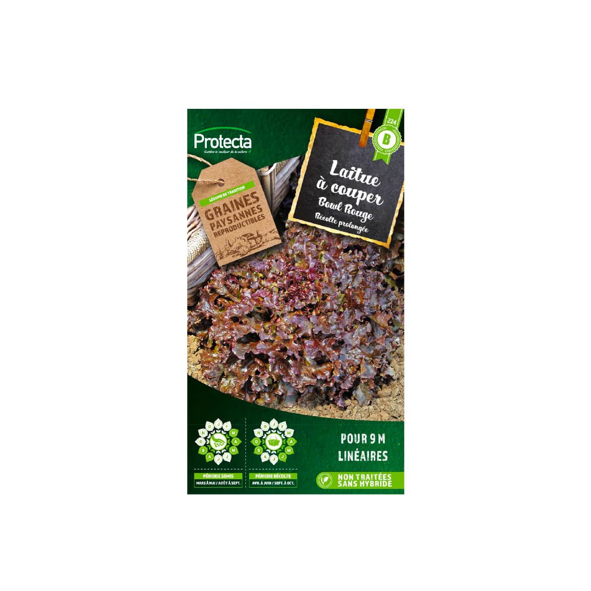 Les graines de laitue à couper Red Salad Bowl produisent une laitue à feuilles rouges, croquantes et savoureuses. Cette variété est idéale pour les salades, les sandwichs et les wraps. La laitue à couper Red Salad Bowl est également riche en vitamines et minéraux essentiels pour une alimentation saine.Caractéristiques Graines issues de l'agriculture biologique pour un mode de production respectueux de l'environnement. Certification bio européenne avec contrôles réguliers indépendants obligatoires. Made in France. Variété de laitue à couper à feuilles rouges, croquantes et savoureuses. Riche en vitamines et minéraux essentiels pour une alimentation saine.CultureLes graines de laitue à couper Red Salad Bowl peuvent être semées en pleine terre au printemps ou en été, à une profondeur de 1 à 2 cm. Il est recommandé de les espacer de 30 cm. La laitue à couper Red Salad Bowl nécessite un arrosage régulier et un sol riche en nutriments.La récolte peut commencer environ 45 jours après la plantation lorsque les feuilles atteignent environ 15 cm de hauteur.ConseilsPour une récolte continue, il est recommandé de semer les graines de laitue à couper Red Salad Bowl en plusieurs fois avec un intervalle de 2 à 3 semaines.Il est conseillé de récolter les feuilles au fur et à mesure des besoins, en coupant les plus grandes feuilles à 2 cm au-dessus de la base de la plante. Cela permettra à la laitue de produire de nouvelles feuilles et de prolonger la durée de la récolte.Pour une meilleure conservation, il est recommandé de conserver la laitue à couper Red Salad Bowl au réfrigérateur dans un sac en plastique perforé.