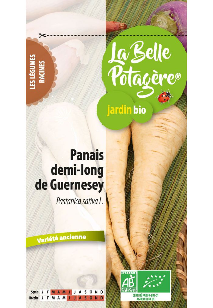 Panais demi-long de Guernesey - 1,5gUn sachet contenant des graines de légumes non OGM, 100% biologiques et provenant de cultures locales.Les cultures sont en Biodynamie ou suivent le cahier des charges Bio Cohérence.Les graines sont issues de variété d'exception, remarquables ou même anciennes.Pour les besoins des jardiniers exigeants et curieux d'apprendre à cultiver écolo.Caractéristiques Sachet de 1,5 gramme de graines de panais demi-long de Guernesey (légumes racines) Variété ancienne Semis : de mars à juin Récolte : de juin à décembre