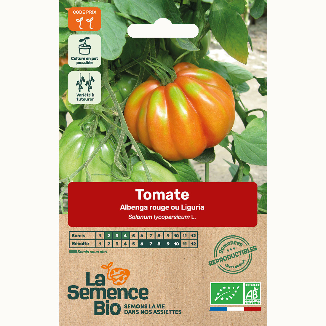 Descriptif : la tomate Albenga rouge ou Liguria, originaire d'Italie, produit des fruits piriformes très côtelés de 200 à 250 g. Cette tomate au c ur rouge en forme de poire est savoureuse et de qualité.