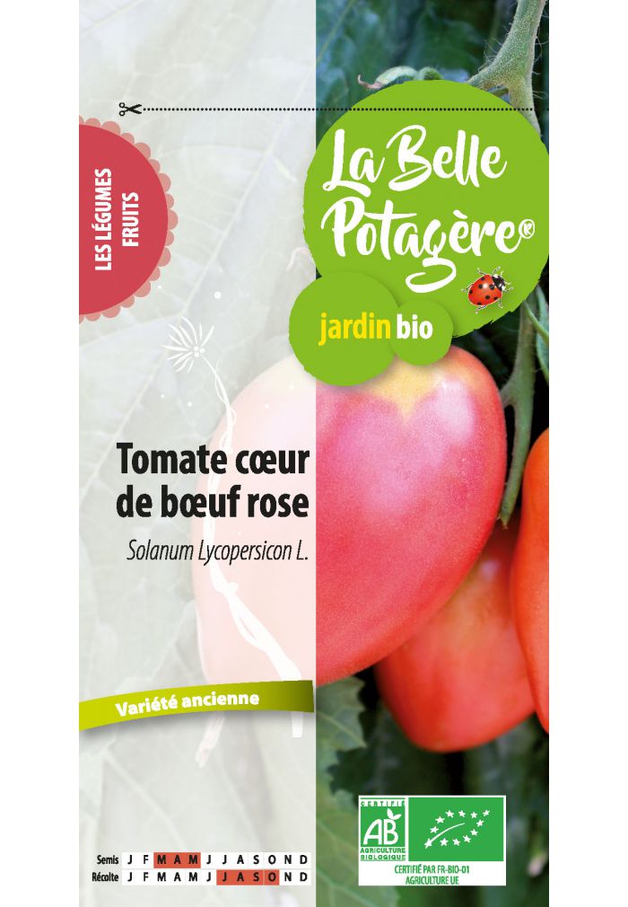 Tomate coeur de boeuf rose - 0,12gUn sachet contenant des graines de légumes non OGM, 100% biologiques et provenant de cultures locales.Les cultures sont en Biodynamie ou suivent le cahier des charges Bio Cohérence.Les graines sont issues de variété d'exception, remarquables ou même anciennes.Pour les besoins des jardiniers exigeants et curieux d'apprendre à cultiver écolo.CaractéristiquesSachet de 0,12 gramme de graines de tomates.Semis : de mars à mai (16°)Récolte : de juillet à octobre
