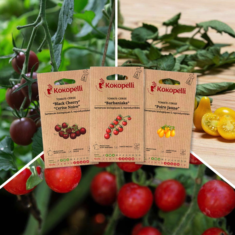Sélection de 3 variétés de graines biologiques et reproductibles à semer, tel que Barbaniaka, Poire Jaune ou encore Black Cherry. Offrant une palette de couleurs et de saveurs uniques. Une sélection très appréciée pour tous les publics.