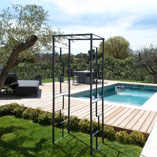Cette arche Linéale gris anthracite au design moderne et élégant apportera un jolie touche décorative à votre extérieur. Double fonction, elle pourra également servir de tuteur à vos plantes grimpantes. Vous pourrez la décorer avec des suspensions florales, des lanternes ou encore des guirlandes lumineuses. L'arche mesure 198 cm de haut, 74 cm de long, et 50 cm de large.