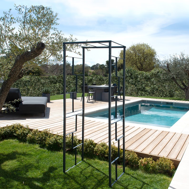 Arche de jardin Linéale en acier anthracite tubes carrés petit modèle + 4 supports poteaux à enfoncer