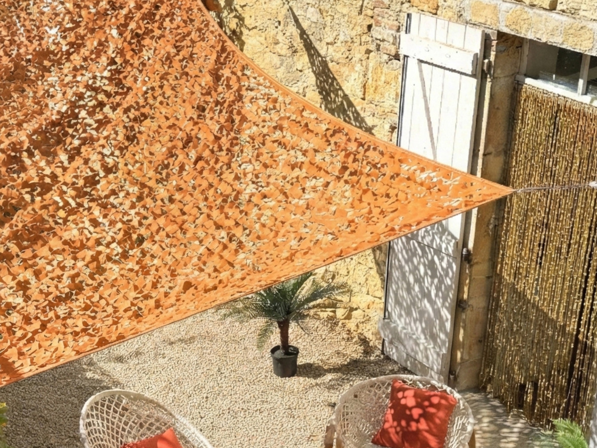 Filet d'ombrage triangulaire polyester Oxford, 3,4 m, army sable - Jardiline  En savoir plus