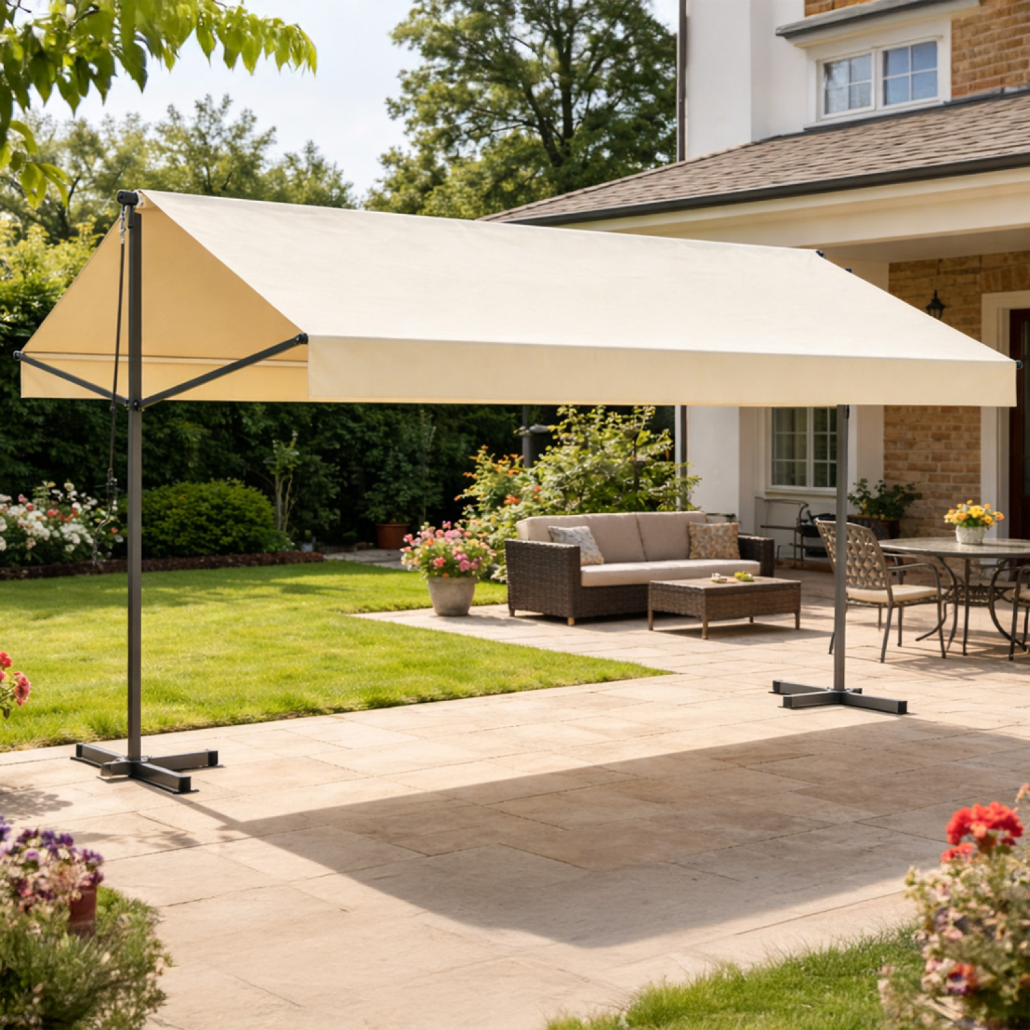 Iseo store banne double pente manuel 4 x 1,5-1,5 m beige hydrofuge