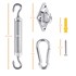 Ce kit de fixation pour voile d’ombrage Linxor est l’allié idéal pour fixer solidement votre voile d’ombrage. Ce kit se compose de 4 supports de fixations, 2 mousquetons, 2 tendeurs à crochets, 16 vis, et 16 chevilles en plastique PE pour béton. Le kit est fabriqué en acier inoxydable 304 de haute qualité et peut supporter jusqu’à 150 kilos. Spécialement conçu pour un usage extérieur, votre voile d’ombrage sera ainsi bien maintenue et résistera davantage aux intempéries. Qu’importe la forme de votre voile d’ombrage : carrée, rectangulaire ou triangulaire, ce kit de fixation s’adaptera à votre toile tendue permettant d’ombrager une terrasse, patio ou balcon. Chaque tendeur mesure de 14 cm à 21 cm, chaque mousqueton 6 cm, chaque support de fixation 6.5 cm de longueur et 3.8 cm de largeur, chaque vis 4.2 cm et chaque cheville 3 cm.