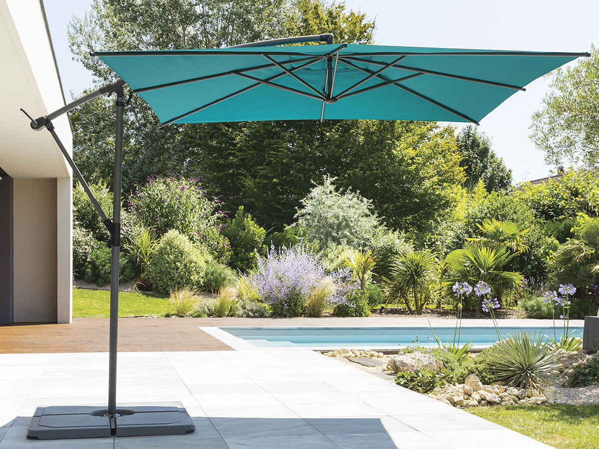 Parasol déporté carré manoa bleu canard - 2,5 x 2,5 m - hespéride
