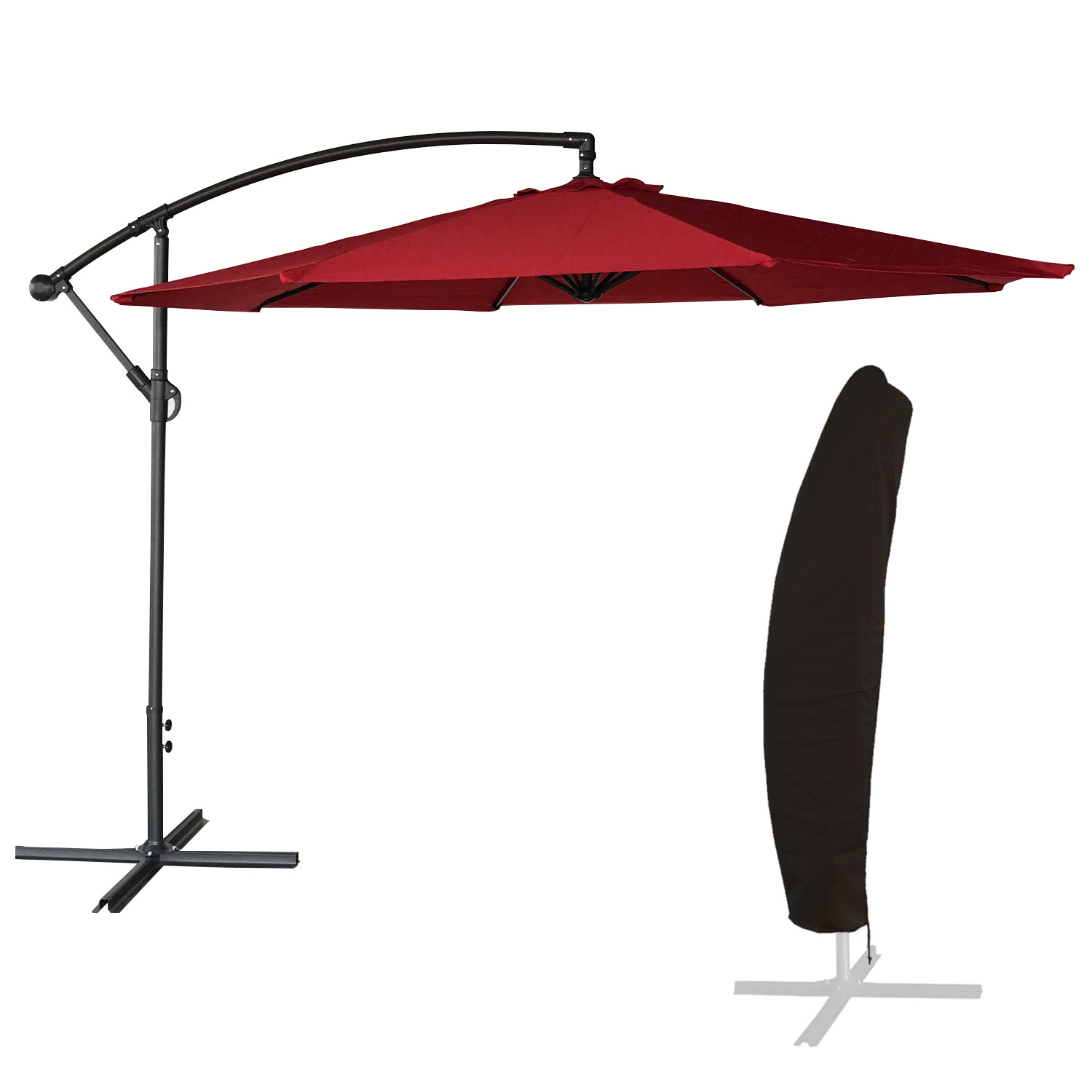 Parasol déporté oahu rond 3,50m de diamètre rouge + housse