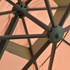 Une tourelle à la base du parasol permet de le fixer sur la croix métallique (livrée avec le parasol) ou sur une base à roulettes.