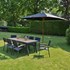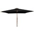 Elégant parasol en bois avec une toile noire pour prendre vos repas au jardin ou sur la terrasses à l'abri du soleil.