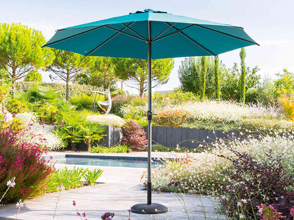 Parasol droit rond loompa bleu canard - 3 m - hespéride