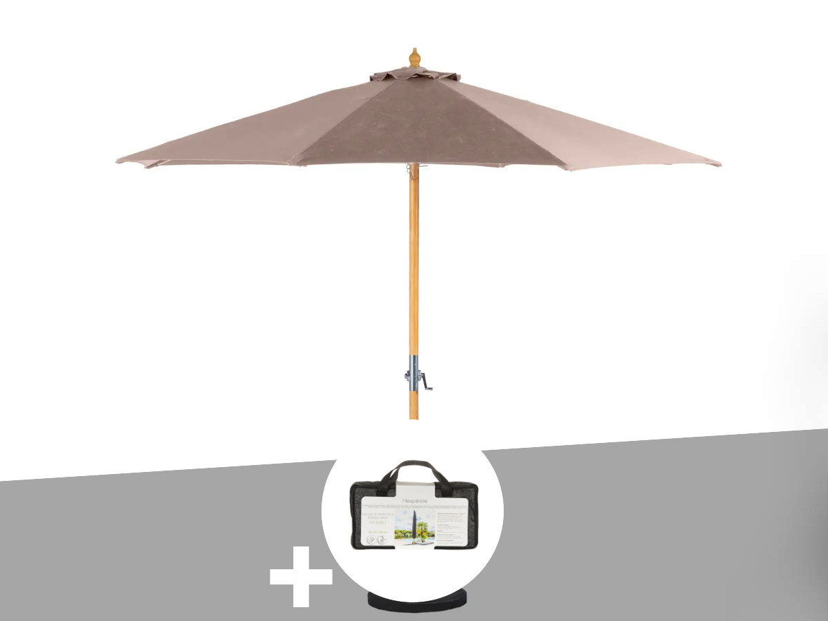 Parasol droit rond tinaei taupe - 3 m + housse protection - hespéride