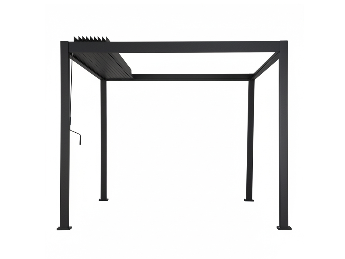 Grâce à sa structure en aluminium époxy, cette pergola autoportée résiste durablement aux intempéries tout en demandant très peu d'entretien. Son toit rétractable manuel vous permet de gérer à volonté la luminosité, l'aération et la protection solaire. Que vous souhaitiez profiter d'un déjeuner à l'ombre, d'une brise légère ou du plein soleil, tout se règle facilement avec la manivelle intégrée.