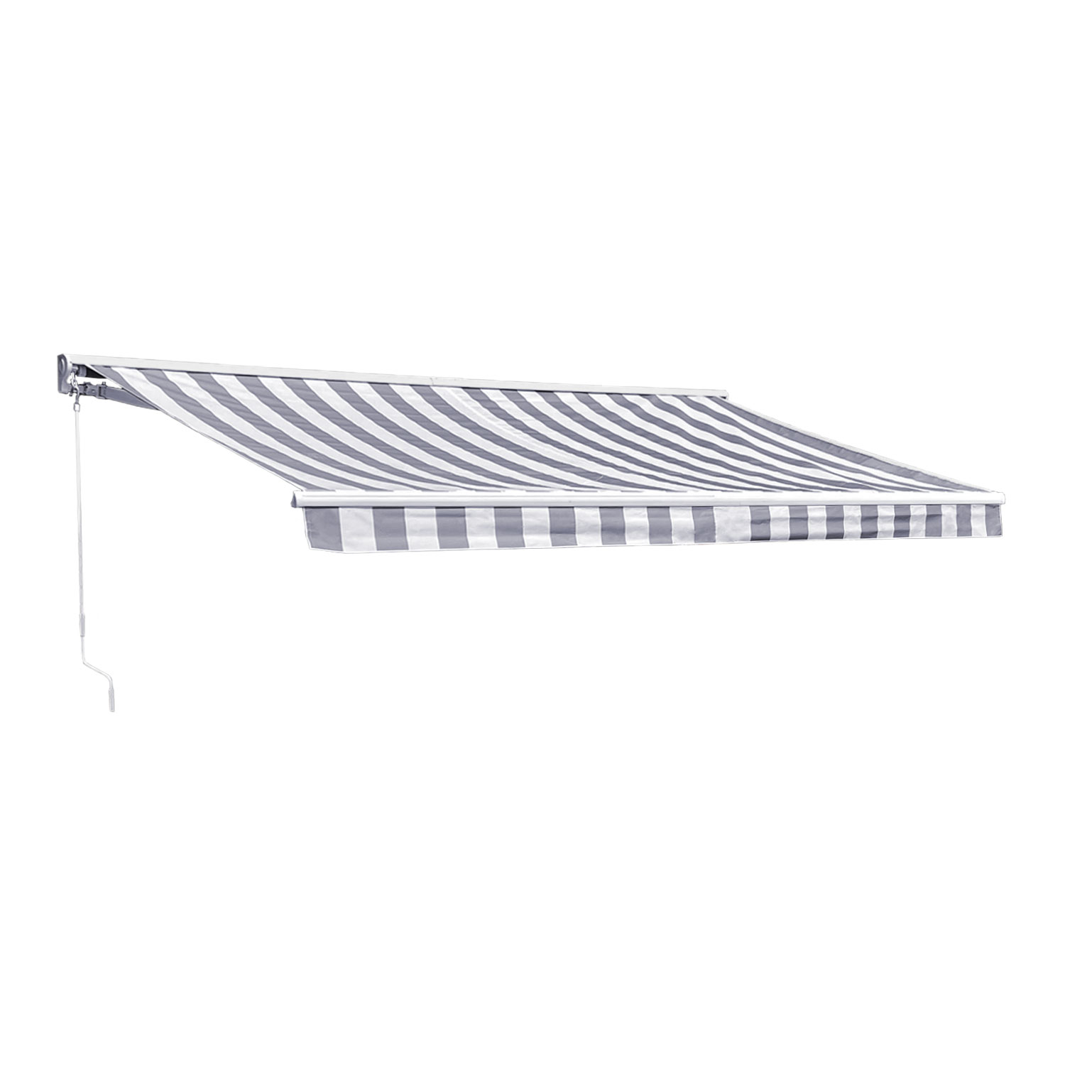 Store banne saule 3,95 × 3m avec semi-coffre - toile rayée blanche grise