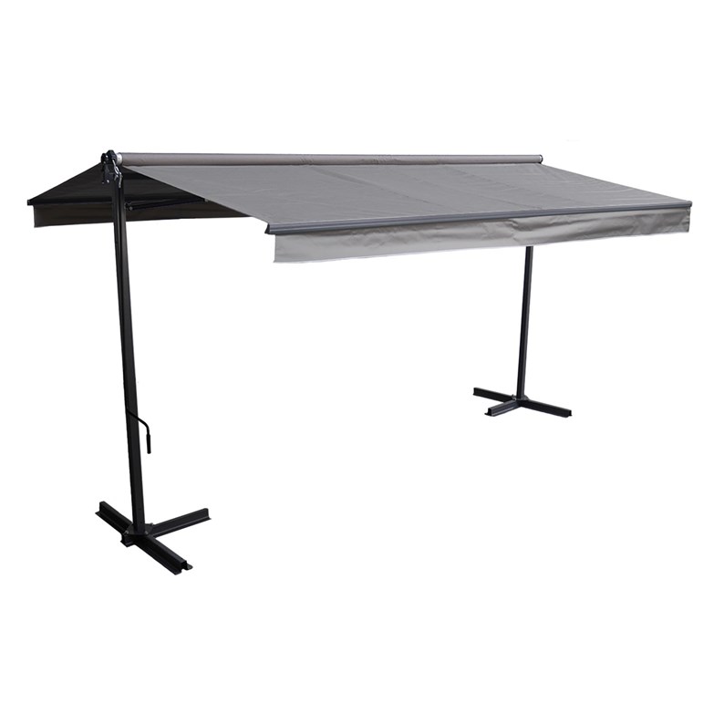 Le store extérieur FRENE est conçu pour ombrager une grande surface, avec ses dimensions de 3,95 x 3 m, sans qu'il soit nécessaire de le fixer à un mur. En effet, il a été monté sur des pieds en acier, solides et résistants, afin de vous laisser le choix de l'endroit où vous le placerez dans votre espace extérieur. Simple et élégant, il constitue une solution idéale pour un usage domestique durant la saison estivale. Équipement parfait pour ombrager une table de jardin, ce store banne double vous offre une protection solaire UV50+. Complétez votre store avec un lot de dalles de lestage pour un maintien au sol lors de son utilisation.