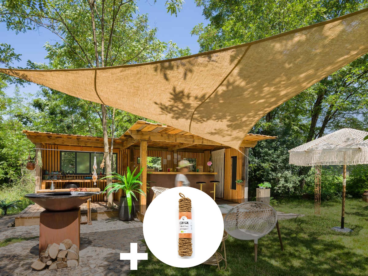 La voile d'ombrage en jute naturelle de 300 g/m' est une solution parfaite pour profiter du plein air tout en restant protégé du soleil.