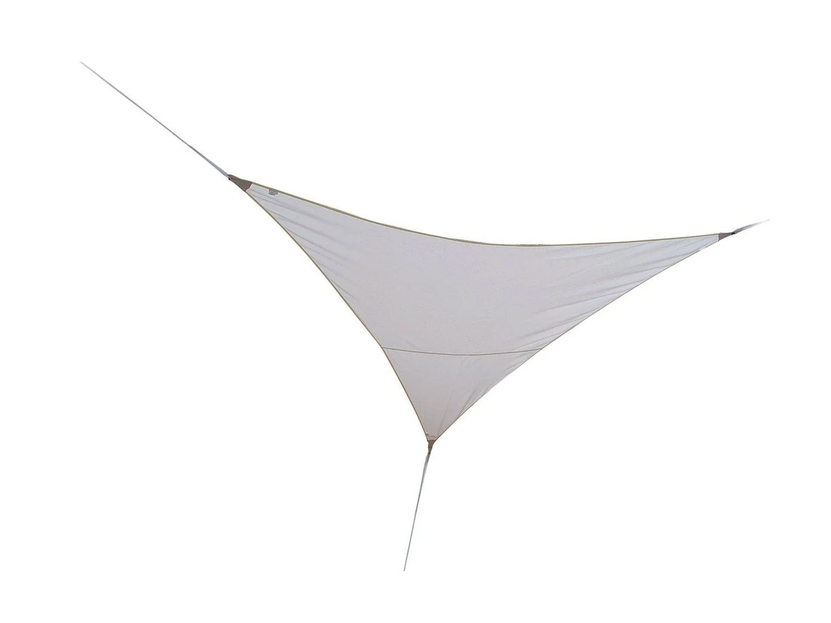 Grand voile d'ombrage triangle Serenity 5 x 5 x 5 m pour terrasse en polyester de qualité. Avec ceinture de renfort et anneaux inox. Barrière aux UV et étanche. Plusieurs couleurs possibles.