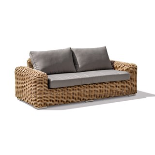 Canapé 2 places pour salon de jardin BORABORA en résine tressée ronde. Coussins déhoussables en toile 100% polyester taupe.