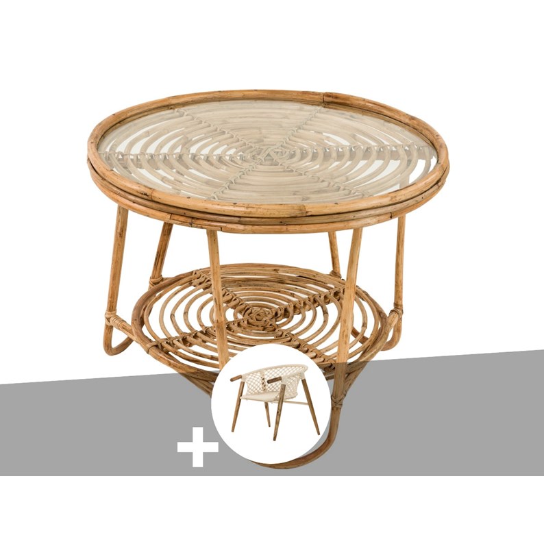 Ce salon de jardin Jardiline apporte une touche bohème chic à votre extérieur, idéal pour créer une ambiance conviviale et relaxante. Composé d'une table basse en rotin avec un élégant plateau en verre et d'un fauteuil en macramé coton, il associe style et confort pour vos moments de détente en plein air. Parfait pour agrémenter une terrasse, une véranda ou un coin jardin, cet ensemble se distingue par ses matériaux naturels et son allure tendance.