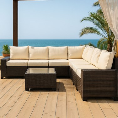 - Ensemble complet de jardin composé de 8 pièces : 1 canapé d'angle et 1 table