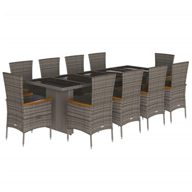 Maison exclusive - ensemble à manger de jardin 11pcs avec coussins gris poly rot
