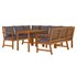 Avec son design intemporel, cet ensemble de salle à manger de jardin en bois avec coussins ajoute une touche de charme rustique à votre patio, terrasse ou jardin. Matériau durable : le bois d'acacia massif est un matériau naturel magnifique. Le bois d'acacia un bois dur tropical, qui est dense, robuste et durable.Cadre stable : le cadre en bois de l'ensemble de salle à manger garantit robustesse et stabilité.Table pratique : la table offre un espace pour les repas, les boissons et autres objets décoratifs.Conception modulaire : chaque pièce est facile à déplacer, ce qui vous permet de créer facilement différents agencements adaptés à vos besoins. Vous pouvez également trouver d'autres meubles sectionnels avec le même design et le même style dans notre boutique en ligne pour arranger vos propres modèles de meubles.Expérience de siège confortable : avec les coussins de siège et de dossier bien rembourrés, l'ensemble de salle à manger d'extérieur est très confortable. Bon à savoir :Pour faciliter au maximum le montage, chaque produit est livré avec des instructions. Remarque :Pour que vos meubles d'extérieur restent beaux, nous vous recommandons de les protéger avec une housse imperméable.La table est plus basse que les tables à manger habituelles, et elle est particulièrement adaptée pour être combinée avec des ensembles de canapés de jardin.