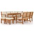 Avec son design intemporel, cet ensemble de salle à manger de jardin en bois avec coussins ajoute une touche de charme rustique à votre patio, terrasse ou jardin. Matériau durable : le bois d'acacia massif est un matériau naturel magnifique. Le bois d'acacia un bois dur tropical, qui est dense, robuste et durable.Cadre stable : le cadre en bois de l'ensemble de salle à manger garantit robustesse et stabilité.Table pratique : la table offre un espace pour les repas, les boissons et autres objets décoratifs.Conception modulaire : chaque pièce est facile à déplacer, ce qui vous permet de créer facilement différents agencements adaptés à vos besoins. Vous pouvez également trouver d'autres meubles sectionnels avec le même design et le même style dans notre boutique en ligne pour arranger vos propres modèles de meubles.Expérience de siège confortable : avec les coussins de siège et de dossier bien rembourrés, l'ensemble de salle à manger d'extérieur est très confortable. Bon à savoir :Pour faciliter au maximum le montage, chaque produit est livré avec des instructions. Remarque :Pour que vos meubles d'extérieur restent beaux, nous vous recommandons de les protéger avec une housse imperméable.La table est plus basse que les tables à manger habituelles, et elle est particulièrement adaptée pour être combinée avec des ensembles de canapés de jardin.