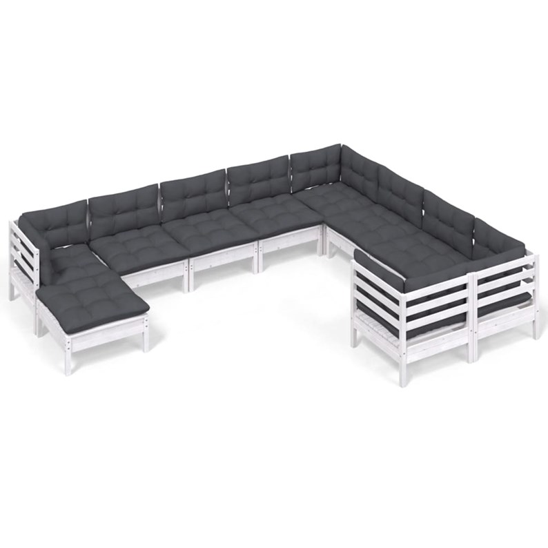 Maison exclusive - salon de jardin 10 pcs avec coussins blanc bois de pin