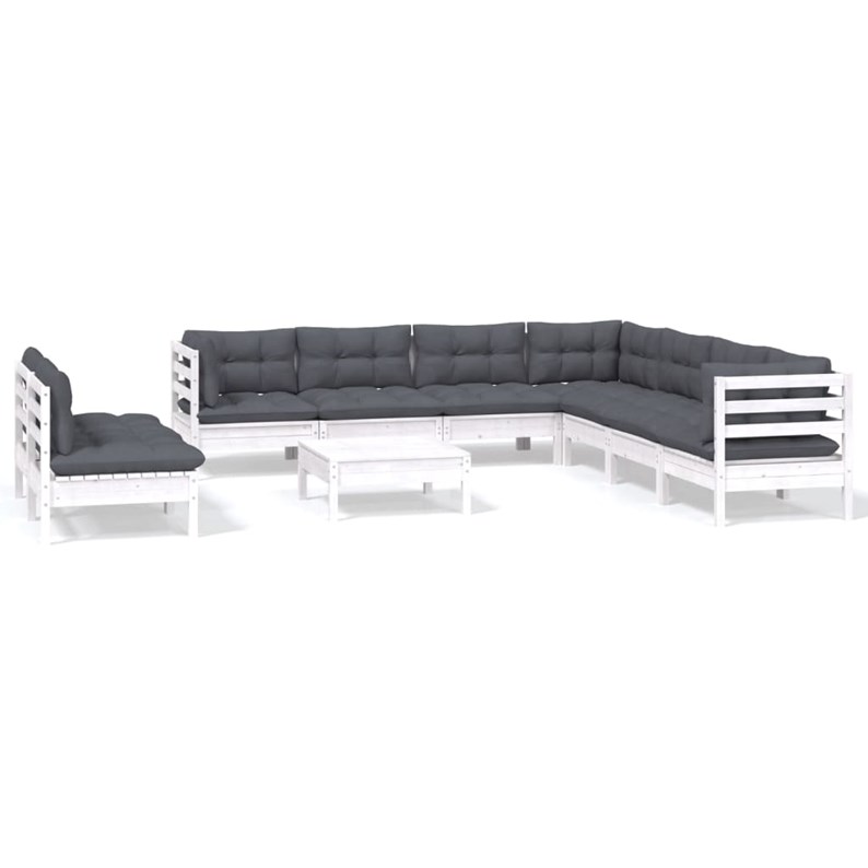 Maison exclusive - salon de jardin 10 pcs avec coussins blanc bois de pin massif